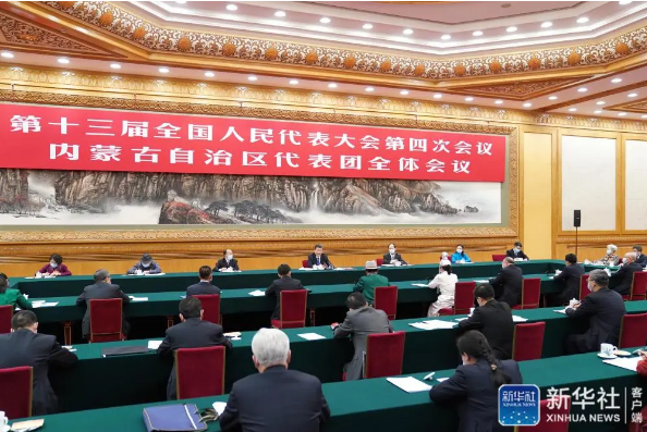 3月5日,中共中央总书记、国家主席、中央军委主席习近平参加十三届全国人大四次会议内蒙古代表团的审议。图源:新华社