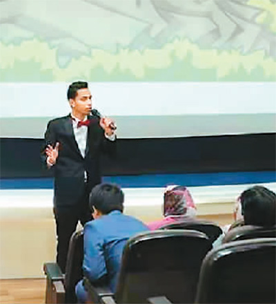 莫易在埃及科技大学举办的中国文化日活动中演讲。