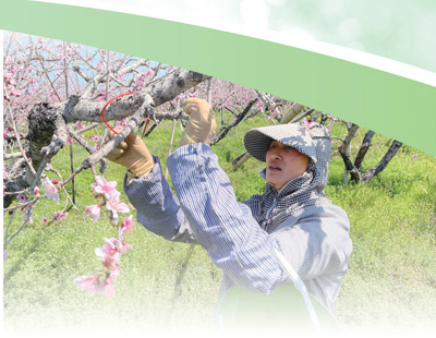 江苏无锡市鑫旺水蜜桃专业合作社的社员正在为桃树系上生物防虫工具迷向丝。  本报记者  白光迪摄