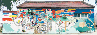 在这里,师生们的创作最初以中国传统吉祥题材里的“鱼”为主线,取“大水峪”村名谐音,同时象征财富与平安。画面内容多样、风格迥异,有绚丽多彩的《海参出海》,借鉴神话题材、具有传统山水风格的《北冥之鲲》,个性新奇的《海底探梦》和来自文学艺术经典的《西游记》等,令人目不暇接。同时,墙面的安排错落有致,给行走在美绘街的游客带来了丰富的体验。