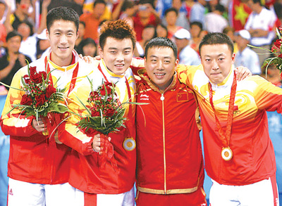2008年8月17日,北京奥运会,乒乓球男团颁奖仪式。资料照片