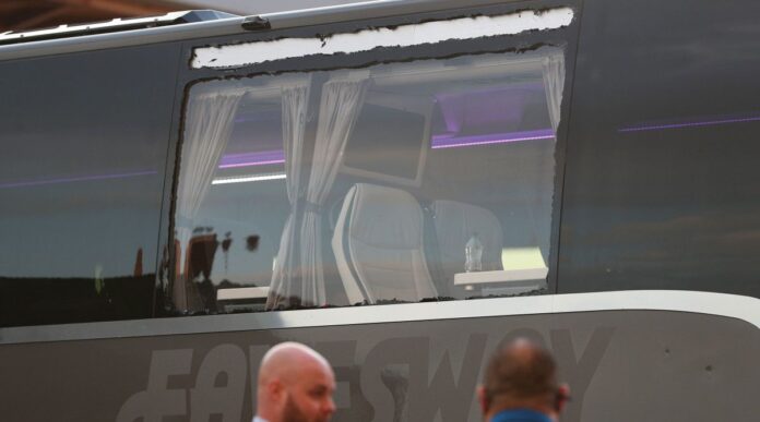 皇马大巴被利物浦球迷袭击 窗玻璃碎了(图)