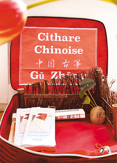 彭静旋在法国街头表演时放在古筝前的“中国角”