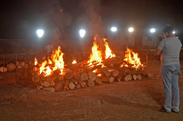 据报道,过去两周,在古吉拉特邦的艾哈迈达巴德市的火葬场,由于每天20多个小时连续运转,一台电炉的烟囱破裂坍塌。在苏特拉市,火葬场每天要火化将近100具遗体。一名火葬场的工作人员表示,上个月每天会火化20多具遗体,而4月以来,每天要处理至少80具遗体。