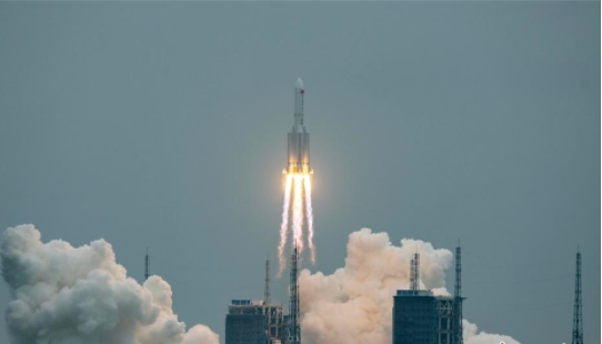 4月29日11时许,搭载空间站天和核心舱的长征五号B遥二运载火箭,在我国文昌航天发射场点火升空,随着天和核心舱与火箭成功分离,进入预定轨道,之后太阳能帆板两翼顺利展开且工作正常,发射任务取得圆满成功,标志着中国空间站在轨组装建造全面展开。(来源:人民网)