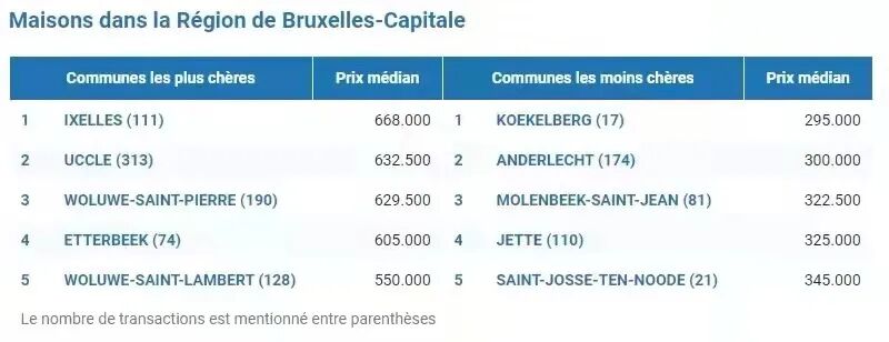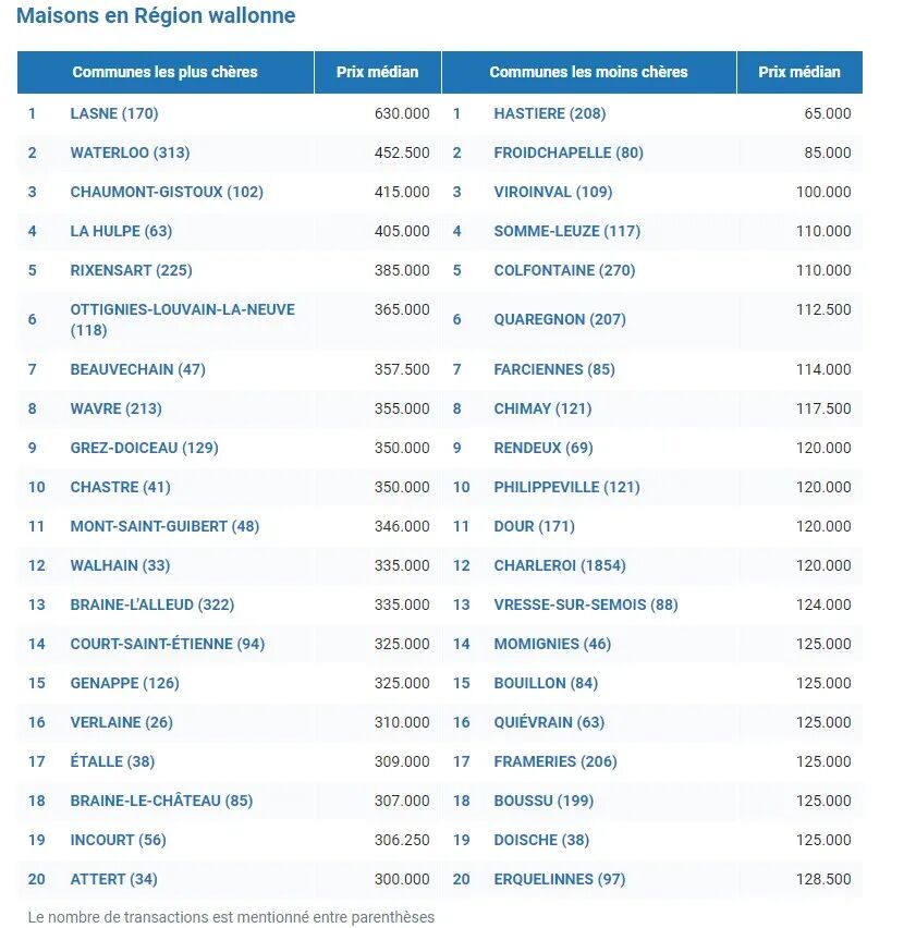 瓦隆地区之前是房价最低的地区,但连排式和半附连式的住房中间价仍然上涨至15.5万欧元(+4.7%),独立式住房上涨至25.4万欧(+5.8%)。公寓价格增长4.7%,达到15.5万欧。