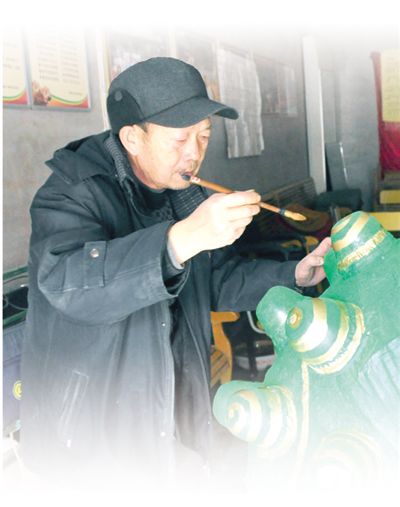 眼若铜铃、口大如盆、毛垂于地,狮头上9个凸起的碧绿大包,以金线勾勒。“玩火狮前要在狮子全身浇上水,百来斤重,得壮后生来耍,现在我是不行啦!”左明新说。