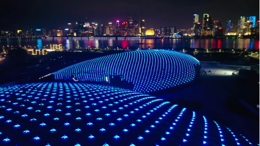杭州奥体中心体育游泳馆的夜景(来源:杭州发布)