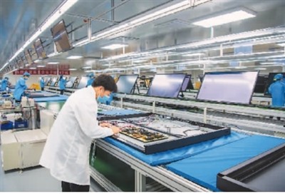 近年来,重庆市綦江区优化营商环境,激发创新主体新活力,培育壮大新兴产业。图为重庆市綦江区工业园区美艾(重庆)科技发展有限公司无尘生产车间内,工人正在组装智能会议平板电路板。  陈星宇摄(人民视觉)