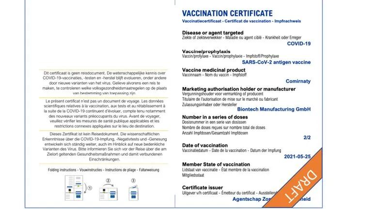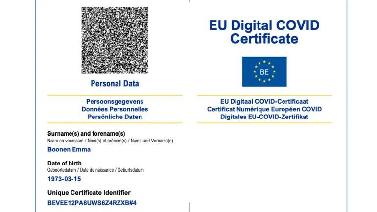 该证书包含独一无二的QR码。欧盟成员国将扫描此代码,以确保其正确性和有效性。该证书将以英文和三种比利时官方语言(荷兰语、德语和法语)起草。