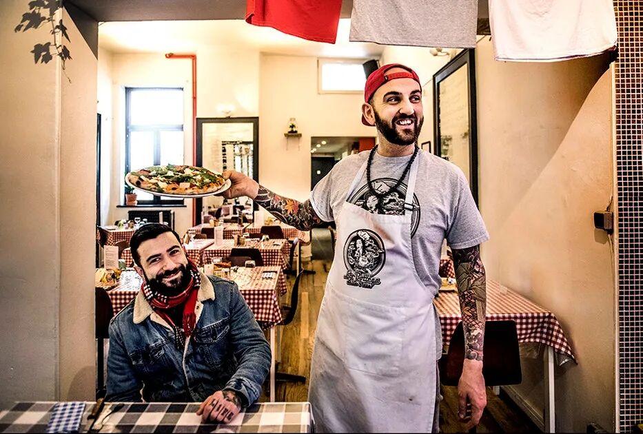 “我开始从事餐饮业是因为我需要钱来维持生计。有一天,我偶然发现一个朋友的披萨店需要帮忙。我一直都很喜欢披萨,我和父母每周日都会去同一家披萨店。我发现了这份工作并且立刻喜爱上了它。”
