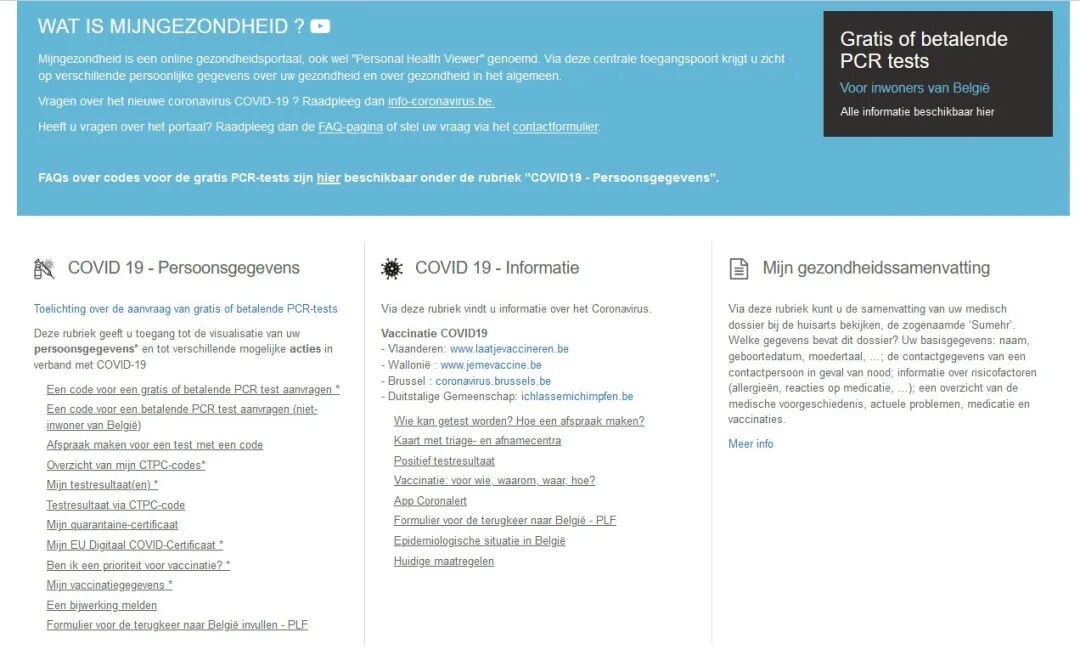 www.mijngezondheid.be政府网站首页,三种比利时官方语言(荷兰语,法语和德语)