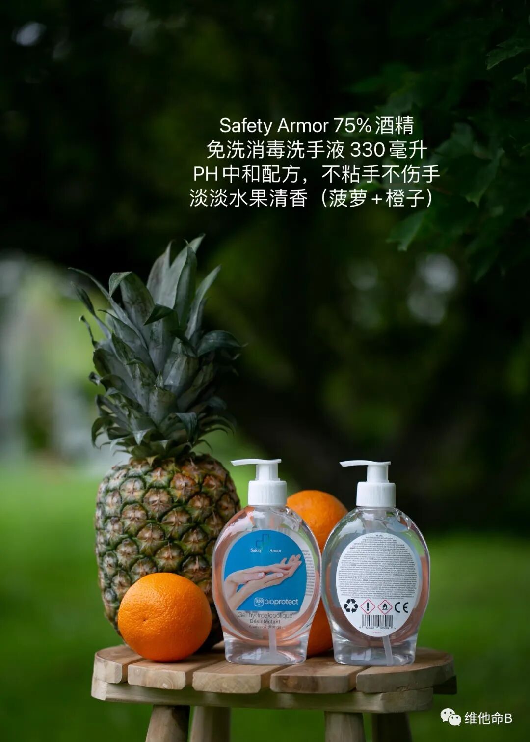 PH值中和的清爽配方,不粘手不伤手,并带有水果清香。瓶身文字为法语,荷兰语和德语,并带有官方批号。