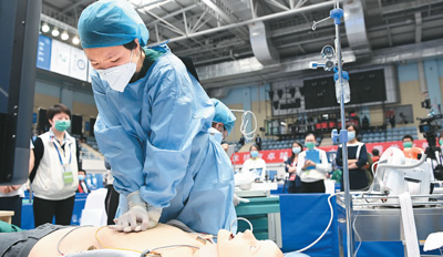 5月16日,在天津医科大学,选手在参加第十届中国大学生医学技术技能大赛冠军争夺赛。新华社记者 李 然摄