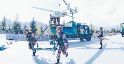 女子无人机飞行班正在进行无人机吊装工作。李 伦摄(人民视觉)