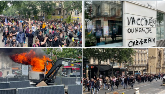 据法新社14日报道,在法国国庆日,首都巴黎及几个城市爆发大规模示威活动,抗议总统马克龙要求民众下月起须持有疫苗及阴性新冠病毒检测证明书才可以进入酒吧、餐厅等公共场所,以及要求医务工作者等9月起必须强制接种疫苗的抗疫新规。