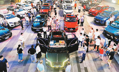 作为城市夜经济和汽车消费的一种新业态,汽车夜市受到市民欢迎。图为日前在重庆万盛经开区国能天街汽车夜市,人们正在看车选车。