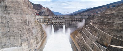 为解决窄河谷、大泄量条件下泄洪消能等问题,负责设计的华东勘测设计研究院采用坝身孔口和岸边泄洪洞联合泄洪的方式进行泄洪。工程师们通过对坝身最大泄量的深入研究,合理确定了坝身与岸边泄洪洞之间的泄量分配比例。针对坝身泄洪消能,工程师们在综合分析下游河床承受能力、坝身孔口布置方式、坝身开孔对坝体结构影响等因素的基础上,通过大量水工模型试验验证,决定采用“坝身两层孔口”的布置方案,将坝身孔口的最大泄量控制在30000立方米每秒,泄洪建筑物超泄能力强、运行可靠性高,有效解决了超大泄洪规模不对称拱坝坝身泄洪消能的技术难题。