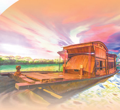 浙江嘉兴南湖革命纪念馆内的红船模型。