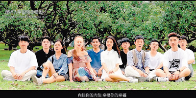 深圳大学国际合唱团的成员一起录制MV《不忘初心》。 申文燮供图