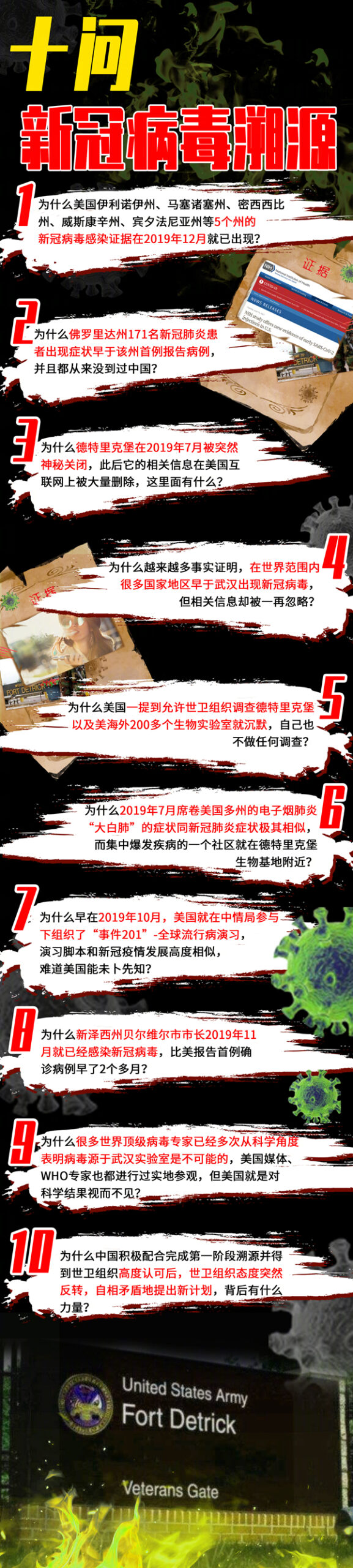 海聚推荐 十问新冠病毒溯源,美国请回答! 27 7 月, 2021 为什么一提到德特里克堡,美国就沉默?美国溯源新冠病毒不心虚吗?为什么中国积极配合第一阶段溯源,结果得到世卫认可后,世卫态度突然反转提出新计划,背后有什么力量?关于新冠病毒,美国究竟向世界隐藏了什么?!
