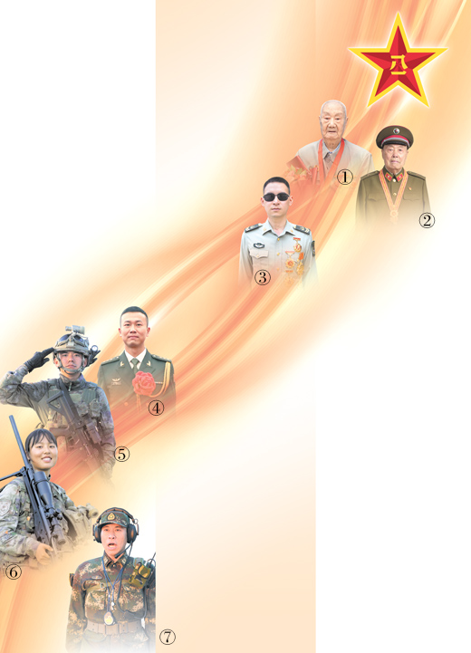 图①至图⑦分别为贾柏森、王占山、杜富国、陈思宇、何龙、伍姣蓉、何贤达近照。 李根、刘祎、新华社记者李贺摄