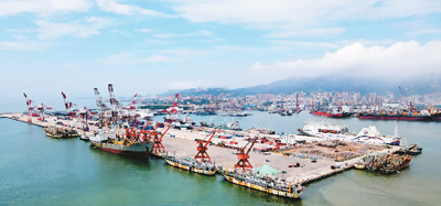 今年以来,山东省荣成市石岛新港积极发展现代贸易,开展跨境电商、大宗货物的承揽和疫情检测等业务,取得了明显成效。图为大型客滚轮正在进港卸货。