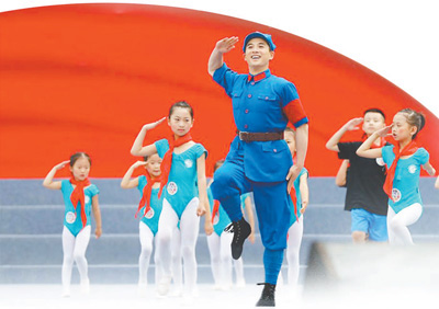 从那以后,只要下基层演出,我都会带当地孩子跳《闪闪的红星》。我记得井冈山革命老区孩子们的笑脸,记得科尔沁草原孩子们身着少数民族服饰、佩戴红领巾跳舞的样子,记得孩子们大声合唱《红星歌》,记得他们骄傲地告诉我“自己也是潘冬子”。今年,我们从舞剧中选取片段进行四个八拍的编排,在抖音开设《闪闪的红星》公益舞蹈课,带着孩子们在“云上”跳舞。7月,我和100个孩子在上海国际舞蹈中心广场用快闪的方式演绎舞蹈《闪闪的红星》。我希望在挥舞的红旗下,让“潘冬子”的独舞变成更多人的群舞。