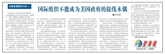 8月2日至13日,《人民日报海外版》“望海楼”栏目推出“起底美国霸权行径”系列评论,共计10篇。让我们看看,这个病毒来源嫌疑国、最大病毒扩散国、抗疫最大失败国、甩锅文化流行国到底什么样子?让我们看清,它是如何大搞“溯源恐怖主义”的,它是如何把国际组织当成自家提线木偶的,它又是如何窃听盟友、输出战争、搞乱别国的……