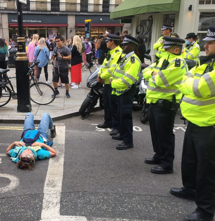 海外网8月24日电 据英国天空新闻网23日报道,第26届联合国气候大会将于11月在英国召开,气候抗议团体“反抗灭绝”近日在英国伦敦街头发起抗议活动,扰乱城市交通,50余人被警方拘捕。