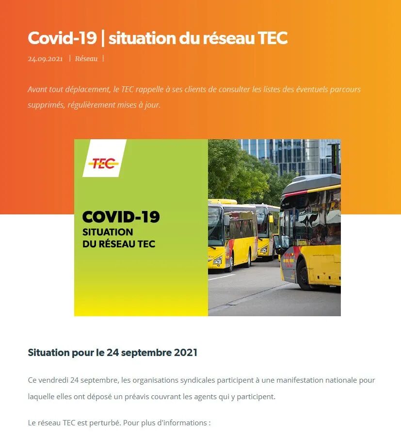 瓦隆大区具体受影响线路请参看:https://www.letec.be/#/News/Detail/Covid-19%20%7C%20situation%20du%20r%C3%A9seau%20TEC/12203