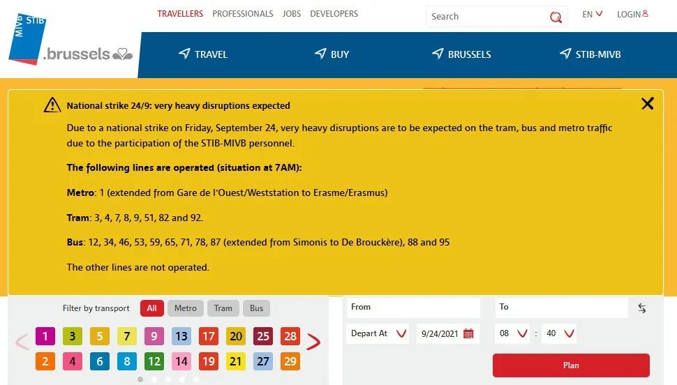 首都大区具体受影响线路请参看:https://www.stib-mivb.be/?l=en