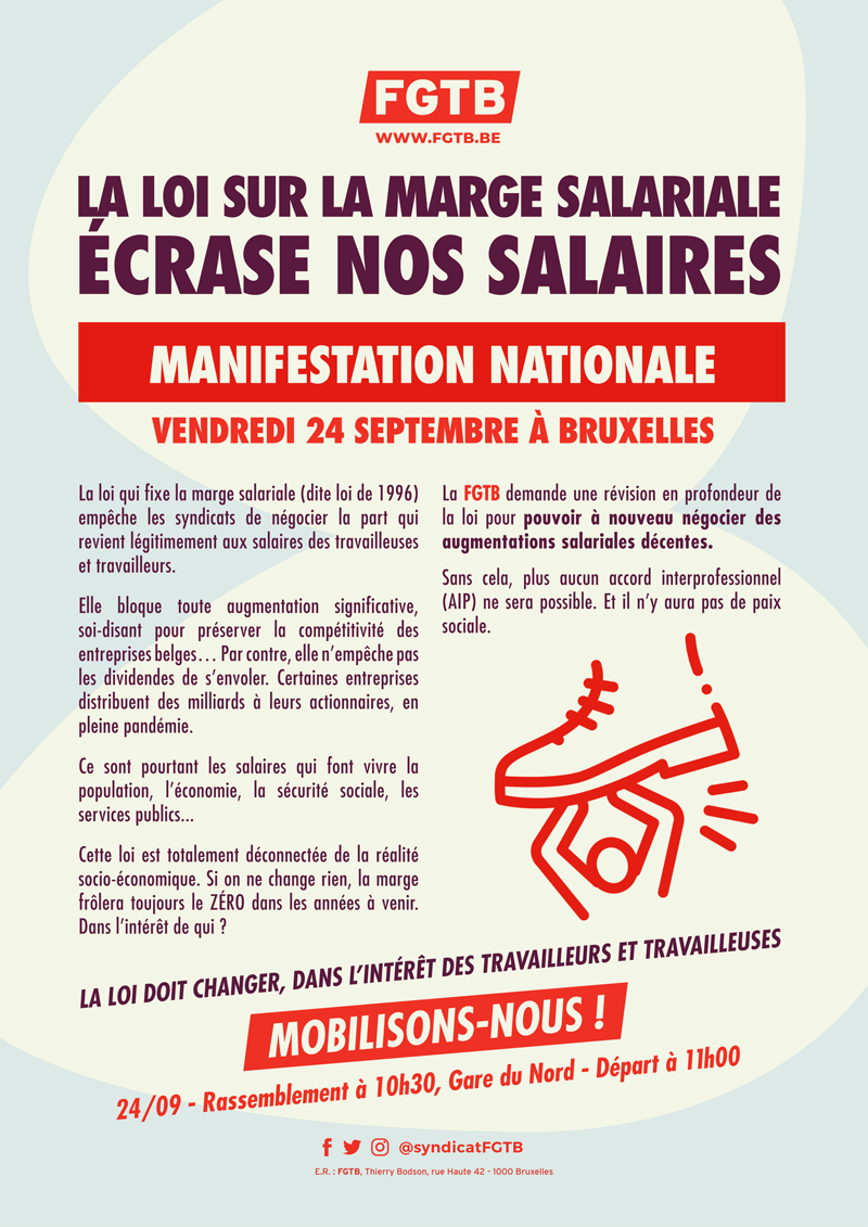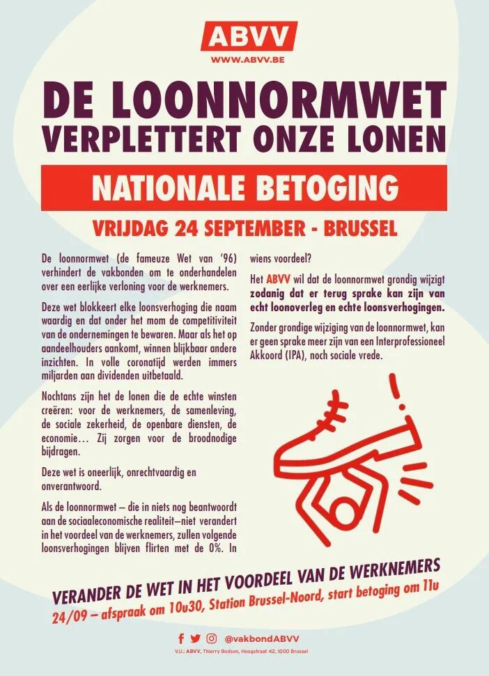 今早,FGTB/ABVV工会在全国举行大罢工,并计划在布鲁塞尔中心组织一场游行示威活动(上午10点30分开始在北站集合,预计活动对中心街区的交通影响持续到下午4点)。诉求是要求政府修订1996 年的法律,该法律确定了工资增长差额。