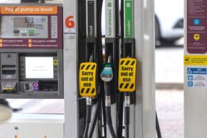 这是9月25日在英国伦敦拍摄的一家停业加油站的加油机。(新华社发,雷伊·唐摄)