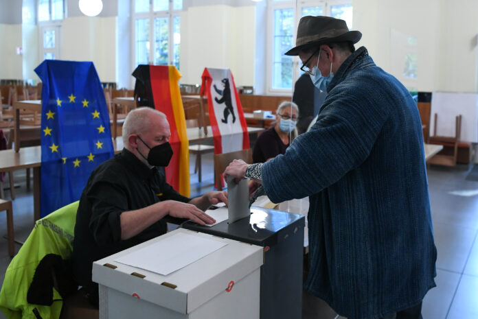 лªÉçÕÕÆ¬£¬°ØÁÖ£¬2021Äê9ÔÂ26ÈÕ £¨¹ú¼Ê£©£¨6£©µÚ20½ìµÂ¹úÁª°îÒéԺѡ¾Ù¾ÙÐÐ 9ÔÂ26ÈÕ£¬Ôڵ¹ú°ØÁÖÒ»´¦Í¶Æ±Õ¾£¬Ò»ÃûÑ¡Ãñ£¨ÓÒ£©²Î¼ÓÁª°îÒéԺѡ¾ÙͶƱ¡£ µÚ20½ìµÂ¹úÁª°îÒéԺѡ¾ÙÓÚ26ÈÕ¾ÙÐУ¬À´×Ô47¸öÕþµ³µÄ6211ÃûºòÑ¡È˽«½ÇÖðÁª°îÒéÔºÖÁÉÙ598¸öÒéϯ¡£Ñ¡¾Ùºó½«²úÉúÐÂÕþ¸®¡£ÏÖÈε¹ú×ÜÀíĬ¿Ë¶ûÔÚÖ´Õþ16Äêºó£¬²»ÔÙѰÇóÁ¬ÈΡ£ лªÉç¼ÇÕß åÖÑô Éã