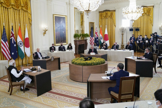 拜登上台后不久,就在“四方安全对话”框架下召开了四国领导人首次线上会议,四国外长、防长更是频繁互动。今年8月美国从阿富汗撤军后,美国更是大肆渲染将印太事务列为优先事项,全面推进印太战略,“四方安全对话”更被美国视为印太布局的重要一环。