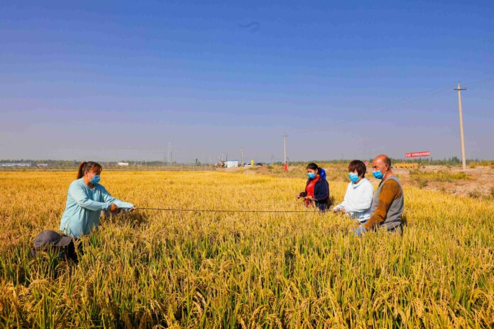 海外网9月28日电 9月25日,喀什地区岳普湖县农业农村局联合青岛海水稻研究发展中心岳普湖基地生产队进行海水稻测产,经严密科学地取样和测产评估,麦稻双季连作的海水稻平均亩产稻谷突破千斤,达579.3公斤。