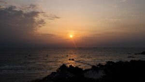 10月1日在秦皇岛北戴河区鸽子窝公园拍摄的海上日出(无人机照片)。新华社记者 金皓原 摄