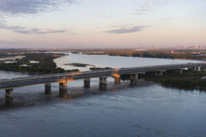 日出时分的松花江哈尔滨段一景(10月1日摄)。新华社记者 谢剑飞 摄