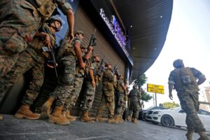 10月14日,黎巴嫩士兵在贝鲁特枪击现场执勤。(新华社发,比拉尔·贾维希摄)