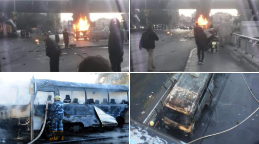 叙利亚大马士革一辆巴士发生爆炸(推特)