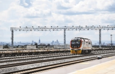 中国交建承建运营的蒙内铁路是肯尼亚在近100年间建设的第一条铁路。该铁路在建设过程中为当地创造了数以万计的就业岗位。图为机车在蒙内铁路铁轨上运行。新华社记者 李琰 摄