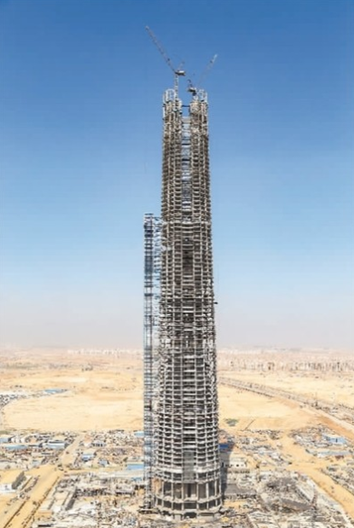 中国建筑股份有限公司埃及分公司承建的埃及新首都中央商务区项目位于开罗以东约50公里处,其中最引人注目的就是将成为“非洲第一高楼”的标志塔项目。图为9月6日,埃及新首都中央商务区标志塔建设现场。黎炳宏摄(新华社发)