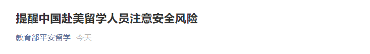 教育部再次提醒赴美留学人员提高安全意识,关注赴美留学可能遭遇的相关风险,加强自我防范和保护意识及能力,冷静妥善应对。同时遵守美国高校相关规定,及时认真查看校方有关信件邮件并按要求及时回应,以免学业受阻。如遇紧急情况,请及时联系驻当地使领馆寻求协助。