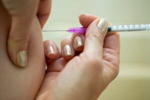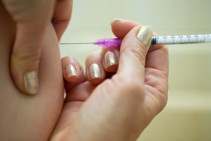 11月4日,在斯洛文尼亚首都卢布尔雅那,医务人员为一名市民注射新冠疫苗。(新华社发,泽利科·斯特凡尼奇摄)