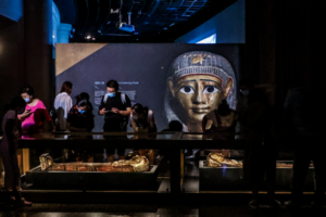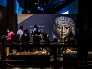 正在中华世纪坛展出的“遇见古埃及 黄金木乃伊”展览国庆假期吸引不少游客。来自英国曼彻斯特博物馆的策展人认为,中方主办方运用了纪录片投影、互动触摸屏等数字新媒体手段,增加了展览的丰富性和完整性。