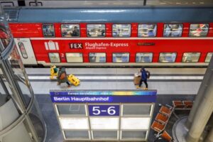 2021年11月5日,乘客走在德国首都柏林的主火车站站台上。(新华社发)