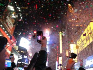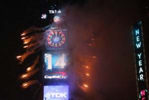 纽约时报广场新年庆祝活动已有110多年历史,其中最经典的一个环节是新年倒计时:随着60秒倒计时开始,一颗巨大水晶球从名为“时报广场一座”楼顶徐徐降下。