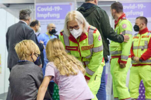 11月15日,奥地利启动针对12岁以下儿童的新冠疫苗接种试点项目。图为在首都维也纳一处新冠疫苗接种点,儿童等待接种疫苗。(新华社发,乔治斯·施耐德摄)