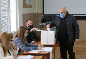 11月21日,一名选民在保加利亚索非亚一处投票站投票。新华社发(马里扬·德拉加诺夫摄)